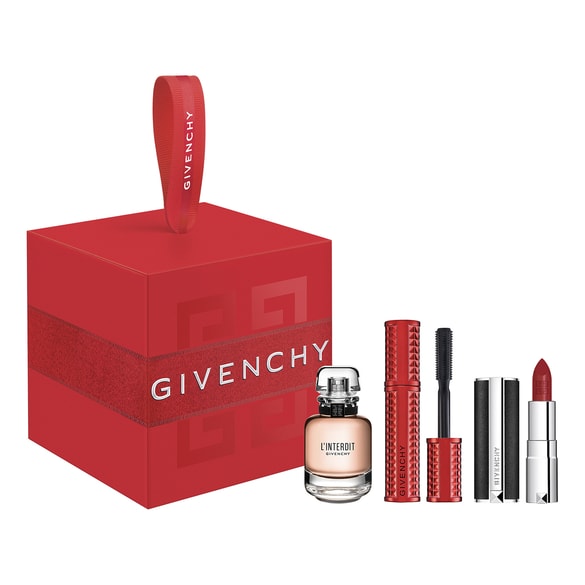 Le sixième coffret est un coffret de noël Givenchy contenant l’eau de parfum l’interdit en 10ml, le mini rouge à lèvres n°333 et le mascara volume Disturbia n°1. Le coffret coûte 30€. https://www.sephora.fr/p/l-interdit—christmas-hanging-eau-de-parfum-521266.html
