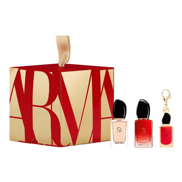 Le huitième coffret est un coffret Armani Si contenant l’eau de parfum Si en 7ml, Si passione en 7ml , et un porte-clés Si. Le coffret est au prix de 30€.