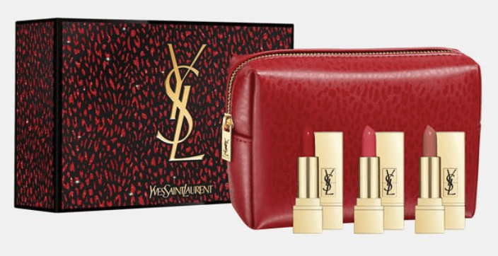 Le troisième coffret est un coffret de trois rouges à lèvres pur couture d’Yves Saint Laurent en teintes n°1, n°52, n°70 et il est accompagné d’une trousse avec le sigle de la marque. Ce coffret coûte 39,9€.
